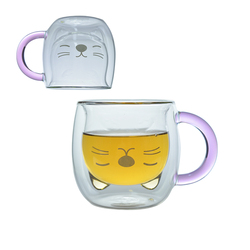 Taza de café de cristal de doble pared con forma de gato personalizada al por mayor, taza bonita para ir a la escuela Xinye XYSC003, senderismo